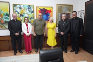 Потоа бискупот Стојанов со своите соработници и директорката на Комисијата за односи со верските заедници и религиозните групи, г-ѓа Оливера Трајковска направија обиколка на градежните работи на идната католичка црква во Куманово.