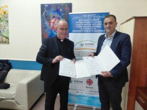 Директорот на Македонски Каритас, о. д-р Зоран Стојанов, и градоначалникот на Општина Валандово, Ѓоко Камчев, во вторник, на 31 март 2026 година, во просториите на Општина Валандово, потпишаа меморандум за соработка во рамки на проектот „Вклучување на жените во подобрувањето на услугите за достапност до чиста вода и санитација и зајакнување на отпорноста на климатските промени во Македонија“, финансиран од Министерството за надворешни работи на Република Словенија и Словенски Каритас.
